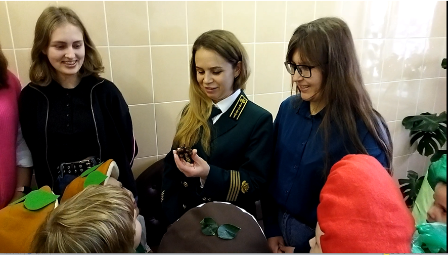 28 ноября 2023г. дошкольное лесничество «Лесовичок» детский сад «Орлёнок» принимало почетных гостей из Министерства лесного хозяйства и охраны объектов животного мира Нижегородской области: консультанта отдела ведения государственного лесного реестра Есину Дарью Игоревну, инженера II категории отдела ведения государственного лесного реестра Сивкову Надежду Витальевну и студенток 3 курса факультета лесного хозяйства ФГБОУ ВО Нижегородского ГАТУ Муравьёву Дарью Сергеевну и Угольникову Алёну Александровну.