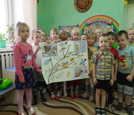 А также отгадывали загадки о зимующих птицах, вспоминали пословицы и поговорки про птиц, играли в подвижные игры, пели песни и просто любовались зимними птахами, рассматривая иллюстрации и слайды с зимующими птицами. Затем дети вместе с воспитателем изготовили плакат « Берегите птиц», где главной героиней была птичка – синичка, которую дети нарисовали сами. Дети вместе с родителями заранее смастерили кормушки. И мы разместили их на территории детского сада, разложив туда угощение для птиц. Этот день надолго запомнится ребятам, и мы надеемся, что они в своей дальнейшей жизни, никогда не обидят и будут беречь этих удивительных и милых птиц.