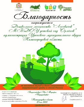 И дошкольное лесничество «Лесовичок» совместно с детским садом – это та организация, которая становится первым институтом воспитания экологической грамотности не только ребёнка, но и родителей.