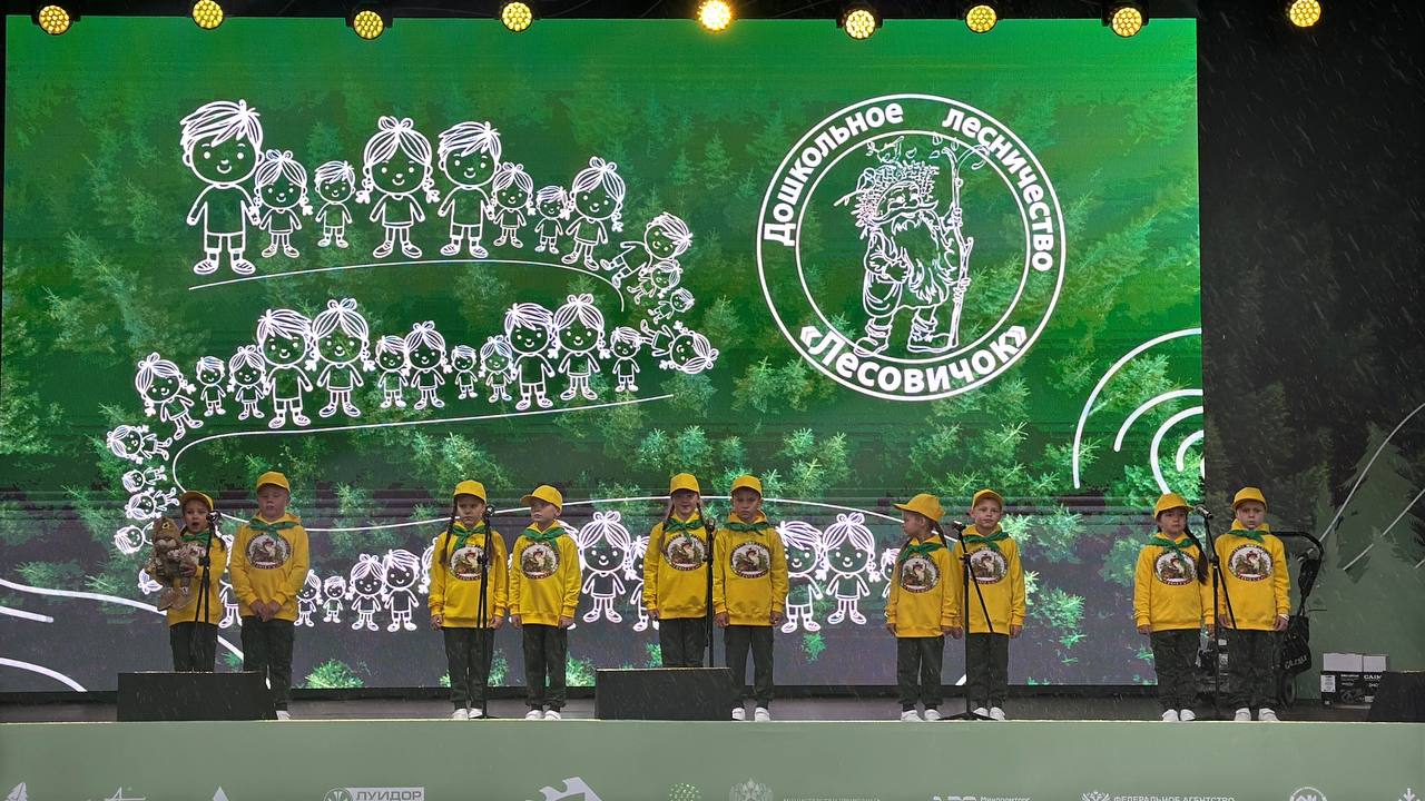 Также ребята из дошкольного лесничества "Лесовичок" приняли участие на торжественном награждении победителей Х Чемпионата России по профессиональному мастерству "Лесоруб - 2025". "Лесовички" поприветствовали и поздравили всех победителей и призёров в различных номинациях.