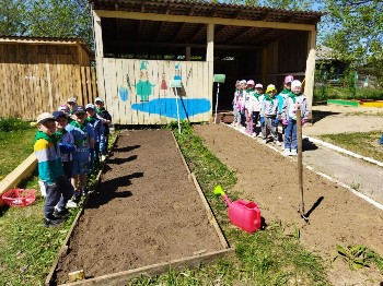 На территории центральной площади посёлка Уста «Лесовичками» было высажено пять саженцев сирени. В субботнике также приняли участие родители детей.