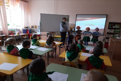 В детском саду «Орлёнок» в рамках Всероссийского фестиваля «Праздник Эколят- молодых защитников Природы» с ребятами дошкольного лесничества «Лесовичок» была проведена викторина «Эколята – защитники природы». « Лесовички» познакомились со сказочными героями, «Эколятами» – друзьями и защитниками природы: Шалуном, Умницей, Тихоней и Ёлочкой. «Эколята» загадывали детям загадки, играли в игры, спели все вместе песенку про кузнечика, рассказывали ребятам правила поведения в природе: как надо поступать и как поступать нельзя. В конце мероприятия «Лесовички» торжественно произнесли «Клятву Эколят – молодых защитников природы», а «Эколята» вручили им эмблемы с логотипом Эколят. Праздник закончился флешмобом «Сбережем природу вместе».