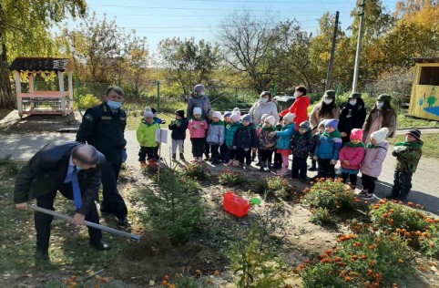 Посадка елочек на территории детского сада совместно с руководителем лесхоза Е.Г. Плешаковым